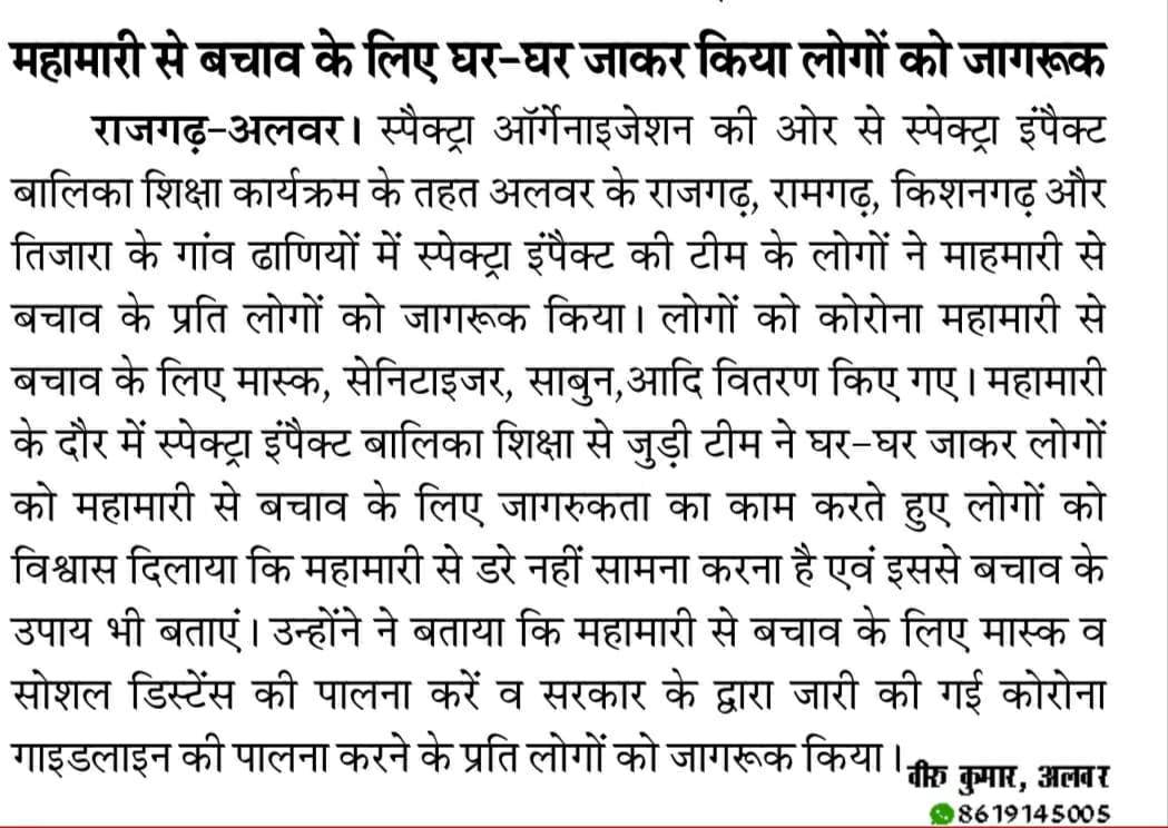 SPECTRA formed SELF-HELP GROUPS ( SHG’s) in Alwar...